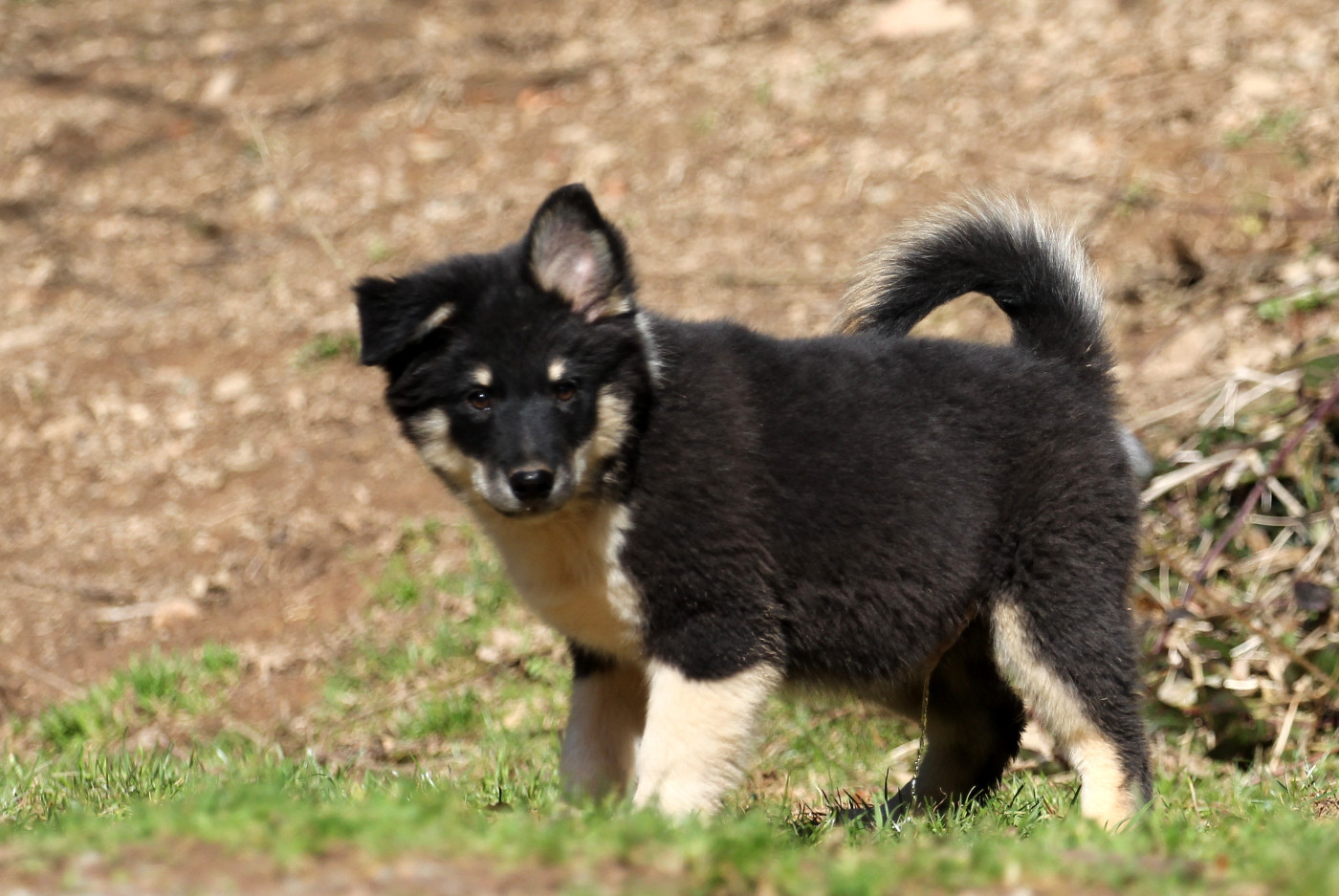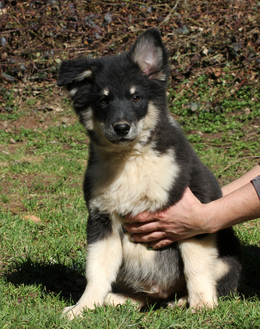 Aribo est un chiot très très proche de l'homme, il adore les câlins, c'est un vrai "pot de colle". Il est sociable, joueur et un brin espiègle. C'est un vrai bout en train, toujours content. Aribo est assez dynamique et très expressif.